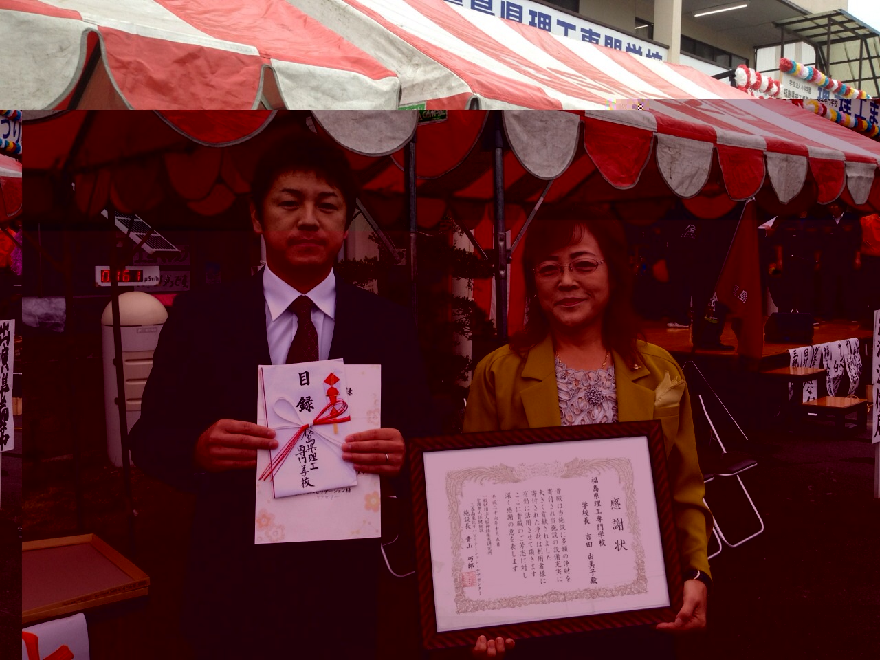 オープニングに、三春南東北リハビリテーションケアセンター様に車いすの贈呈式を行い、
